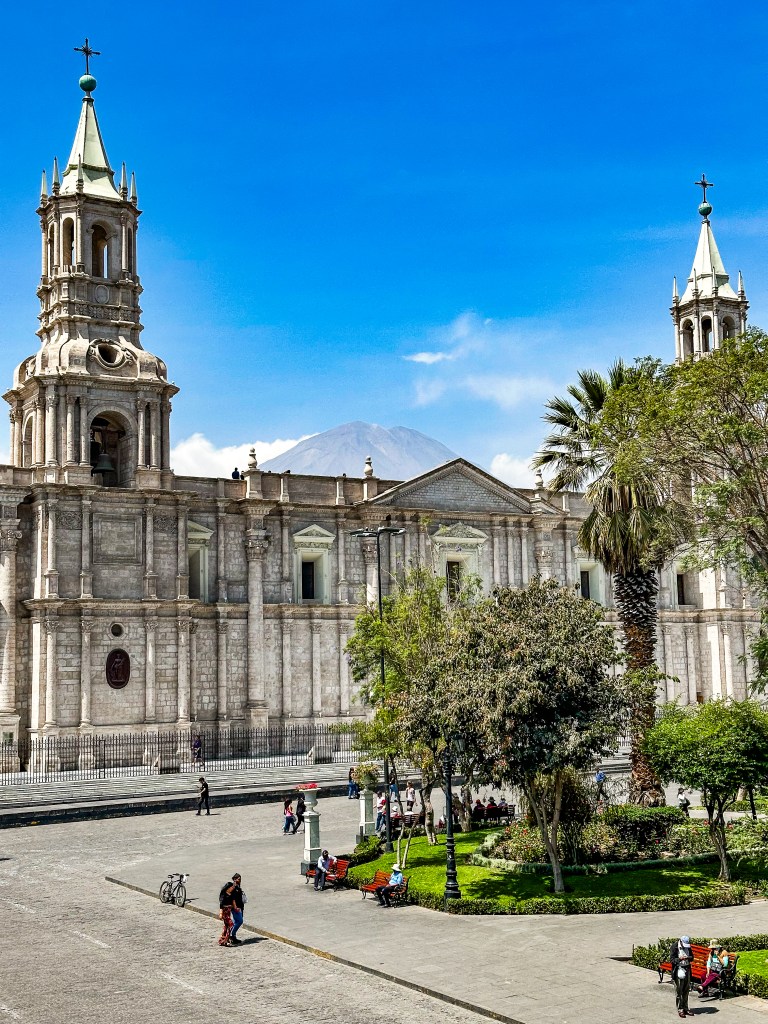 La città è situata a 2335 mslm, ai piedi del vulcano El Misti (5822 m) e se partite dal livello zero di Lima e dovete arrivare a Puno o Cusco, entrambe oltre i 3000 m di quota, una sosta in questa zona direi che è decisamente consigliata per evitare il male d’altura.